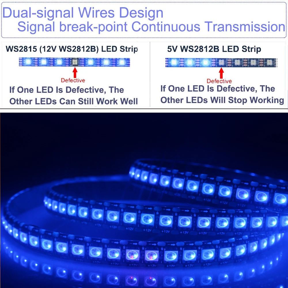 (4) Светодиодный фонарь WS2815 обновленная версия 5 в WS2812B светодиодный. Для 5 м светодиодный полосы, даже если все светодиодный s включены полностью белый, 12 В версия не имеет падение напряжения. Вам не нужно вводить питание так часто, как версия 5 В.