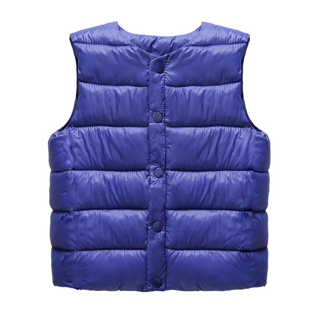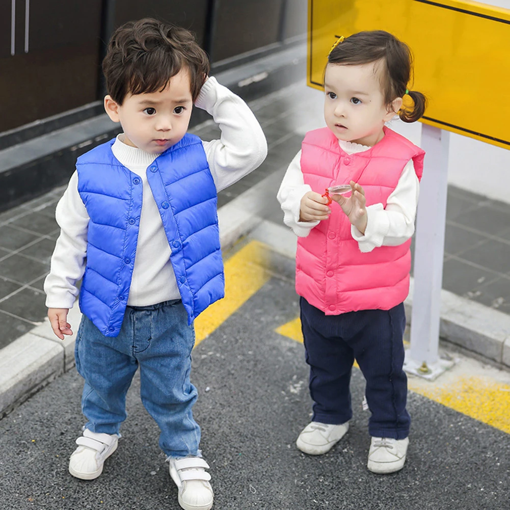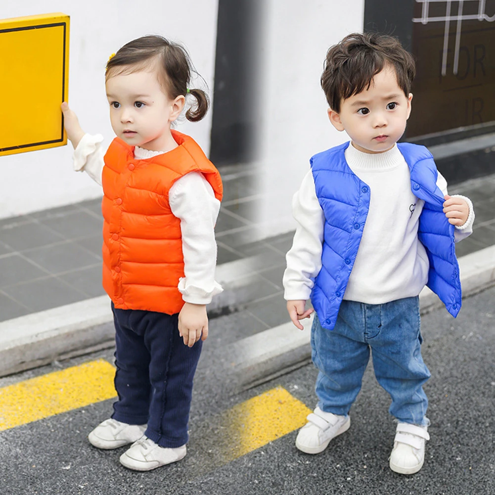 Модный детский зимний теплый жилет на пуговицах для мальчиков и девочек, пуховик без рукавов, верхняя одежда, осенне-зимний пуховый жилет