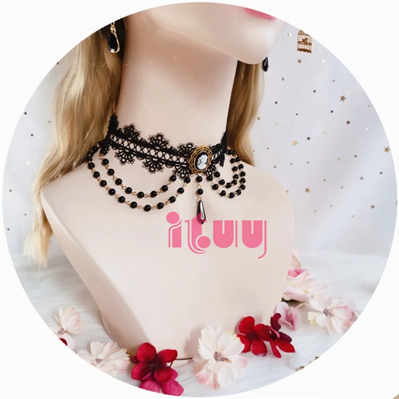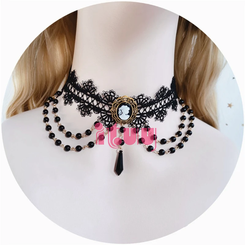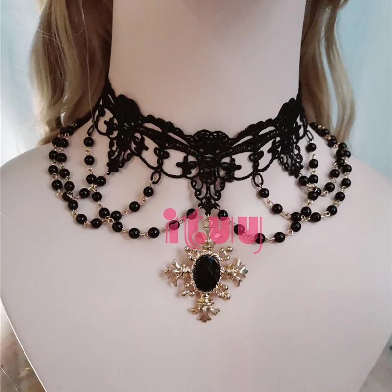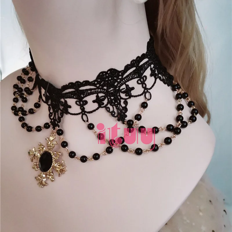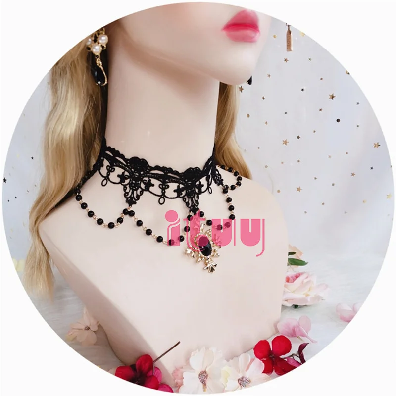 Лолита KC Готическая серия Диабло Нотр-Дам Аполлон солнце панк роза Жемчужное кружевное ожерелье с цепочкой на ключицы