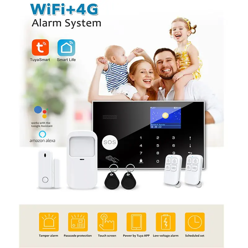 Беспроводная система сигнализации, 4G 3G, Wi-Fi, с IP-камерой, совместим с Alexa, для умного дома, Комплект охранной сигнализации, Управление приложениями на Ios и Android