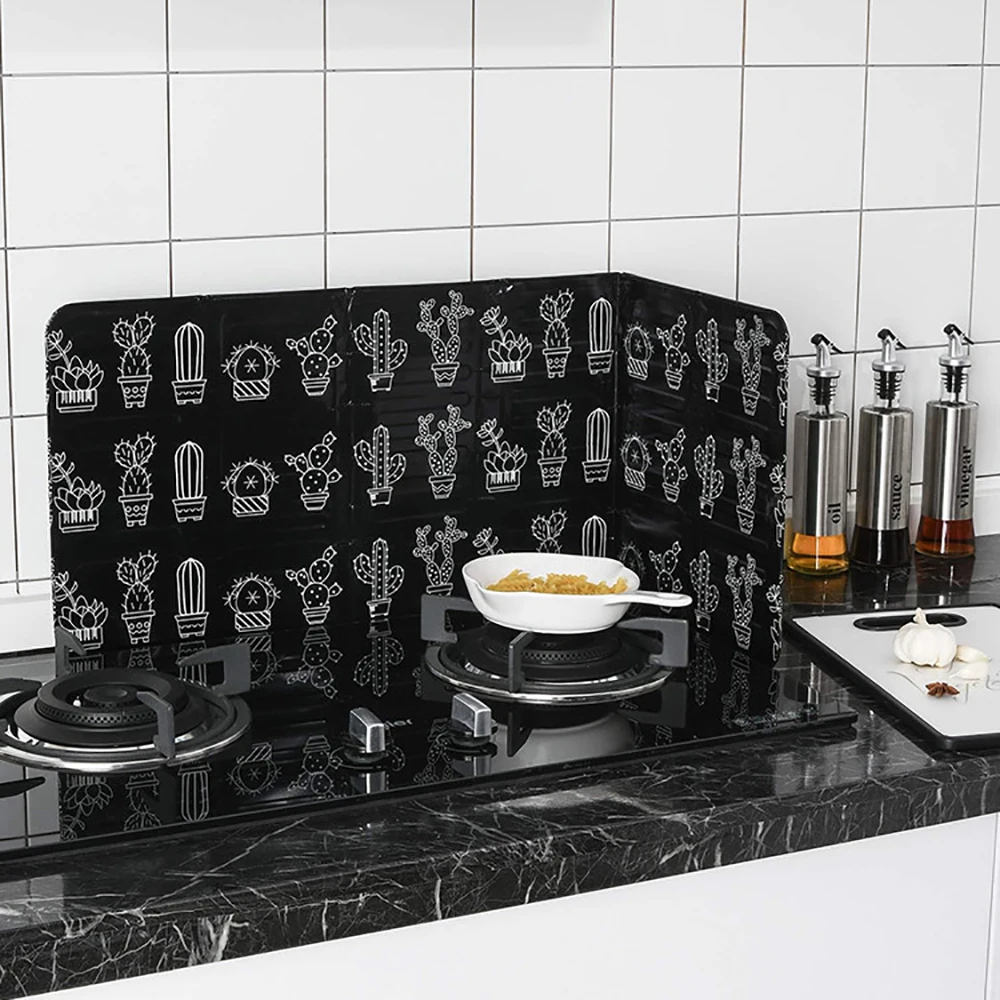 Защита от брызг масла отличается красивыми задними и белыми узорами. Вы можете выбрать два типа: милый кактус и Классический рисунок листьев.