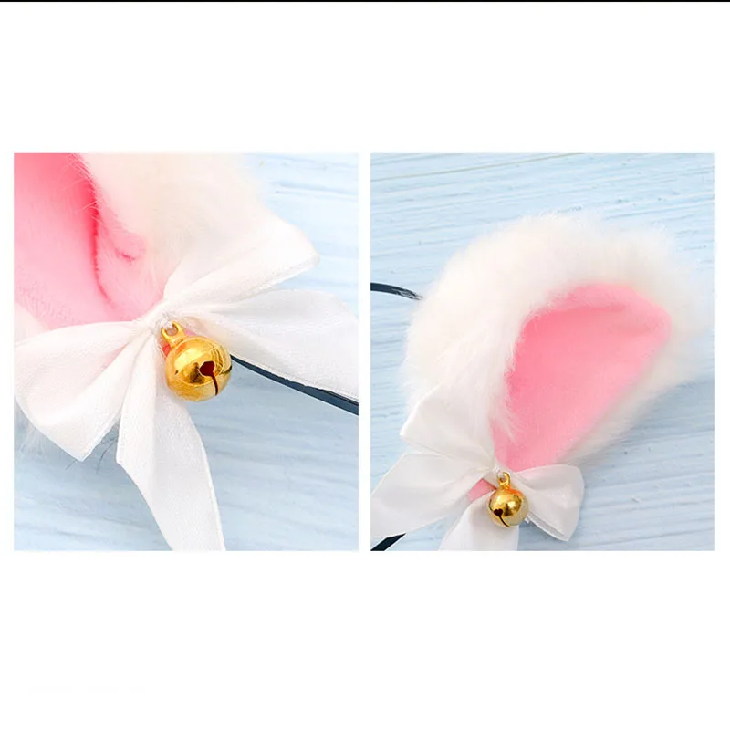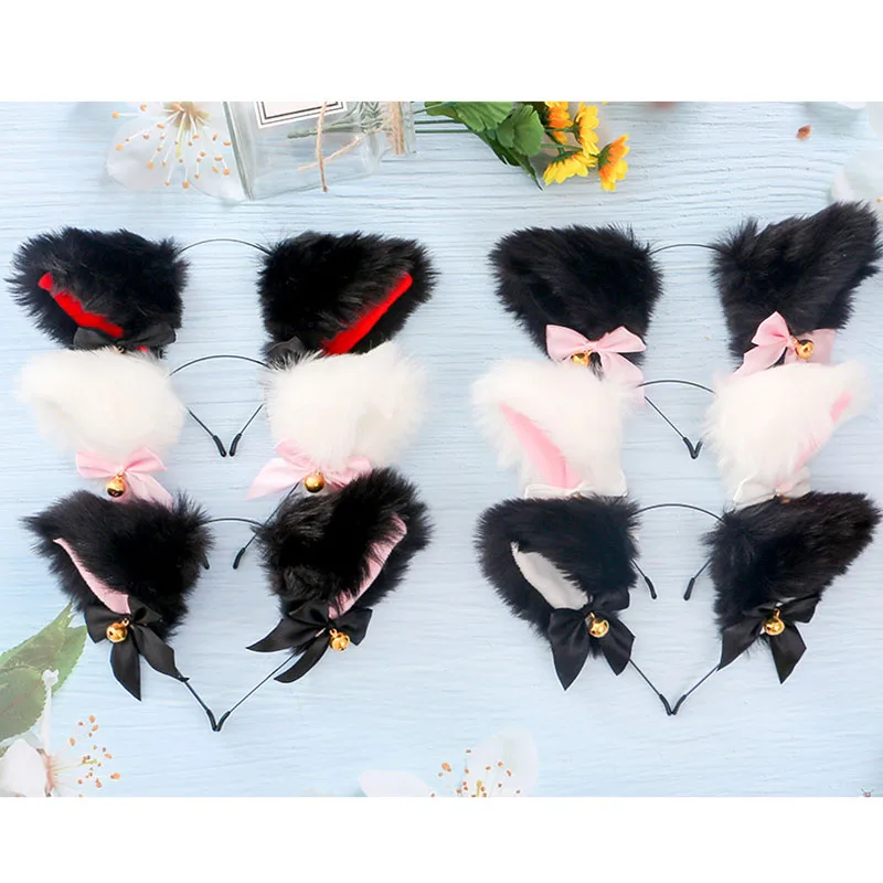 Повязка на голову с кошачьими ушками для косплея, головной убор с персонажами аниме, реквизит, плюшевые кошачьи уши, колокольчики с лисьими ушками, повязка на голову