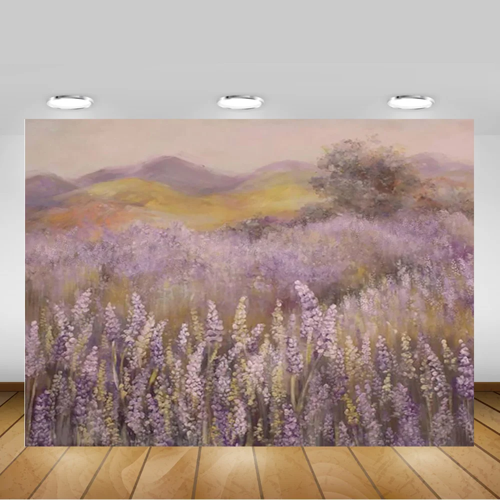 Лавандовый фон для детской портретной фотосъемки на день рождения с изображением гор