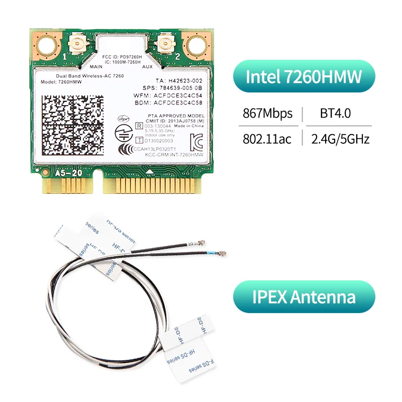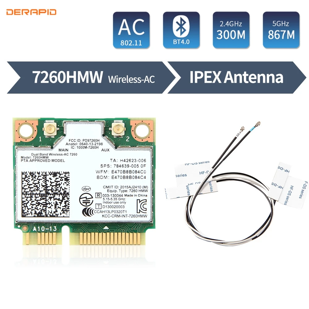 Двухдиапазонная Wi-Fi карта IPEX, 1200 Мбитс, 802.11AC, для Intel7260, 7260AC, 7260HMW, 2,45 ГГц, Bluetooth 4,0, Mini PCIe
