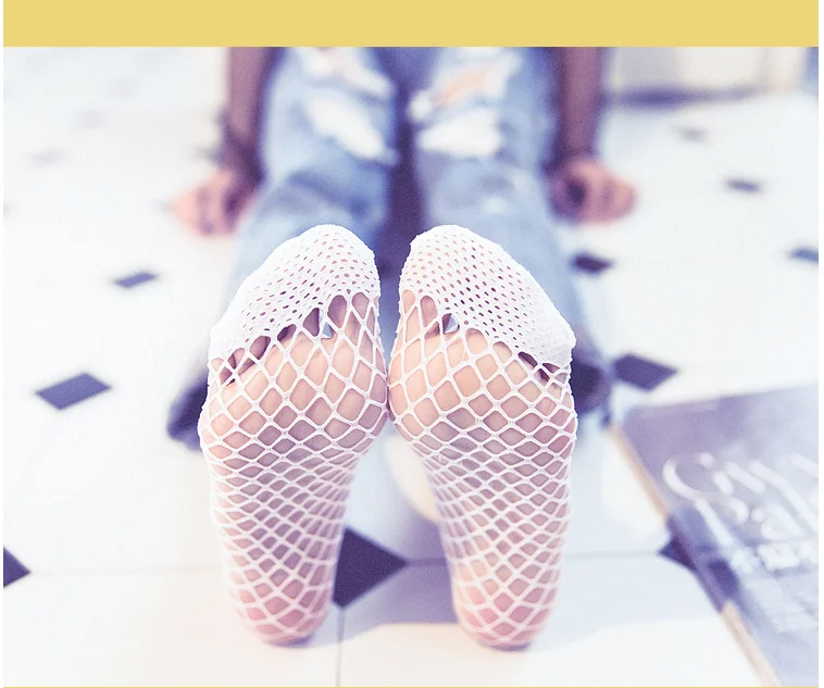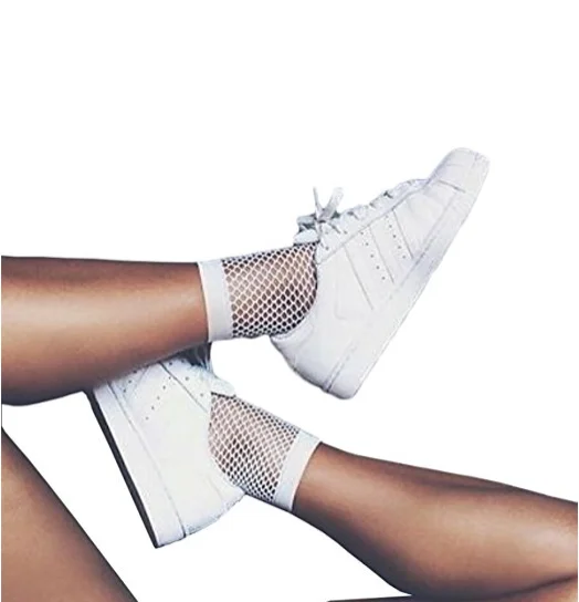 Сетчатые женские белые носки, сексуальные тонкие сетчатые носки с отверстиями, модные сетчатые носки с рыбкой, один размер