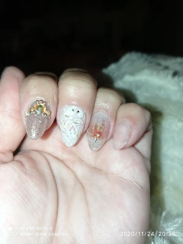 Шаги использования:1. Слегка отшлифуйте поверхность ногтя2. При необходимости Нанесите очень тонкий слой косточки или натуральный праймер для ногтей3. Нанесите строительный гель для ногтей и держите в течение 3 минут. Нанесите дополнительные слои при желании4. Поместите ногти под УФ/светодиодную лампу на 3 минуты, чтобы полностью выдержать гель5. Нанесите второй слой геля и держите в течение 3 минут6. Очистите ногти безворсовым салфетки для ногтей насыщенным очищающим средством, чтобы удалить липкий не затвердевший слой.Как снять:Шаг 1. Смочите ногти в жидкости для снятия акрила примерно на 5 минут.Шаг 2. Аккуратно разделите целый кусок эмали на каждый ноготь.