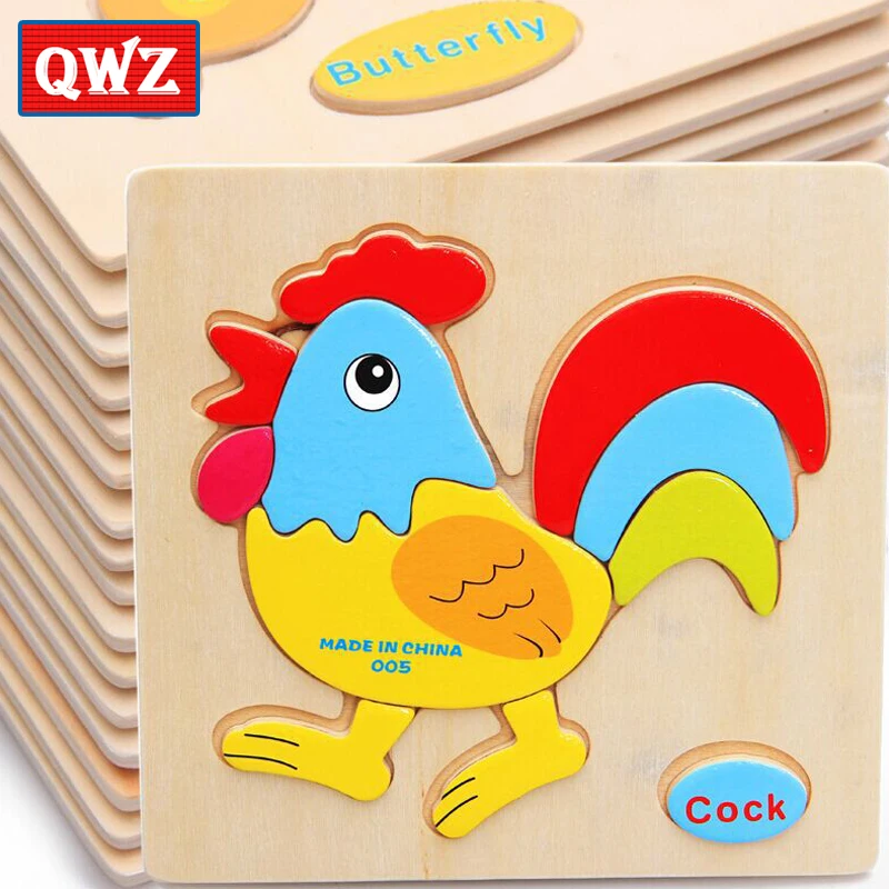 Деревянный 3D пазл QWZ, деревянные игрушки для детей, Мультяшные жи...