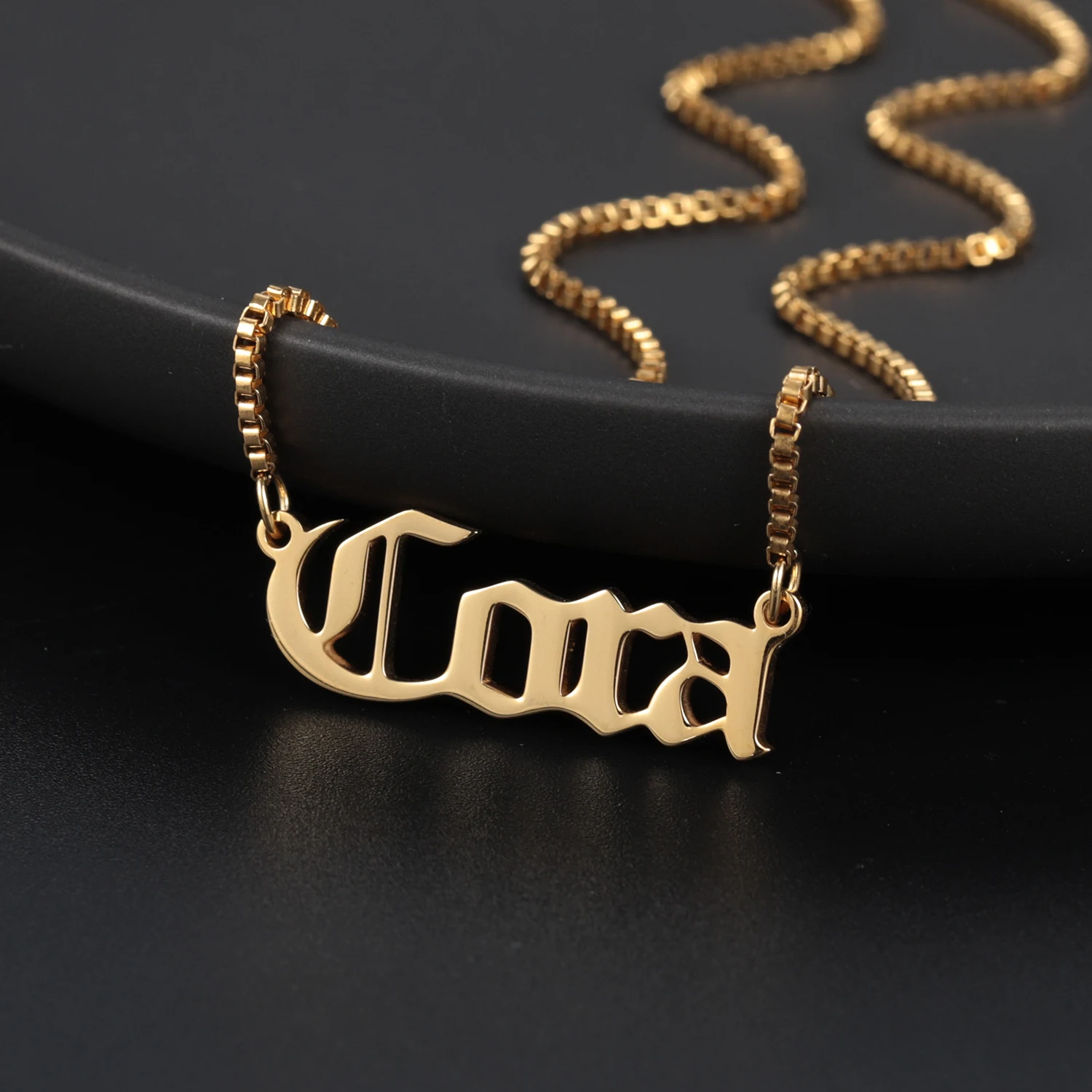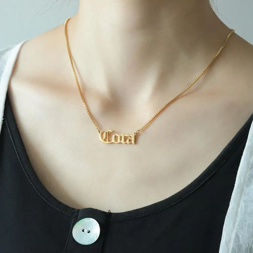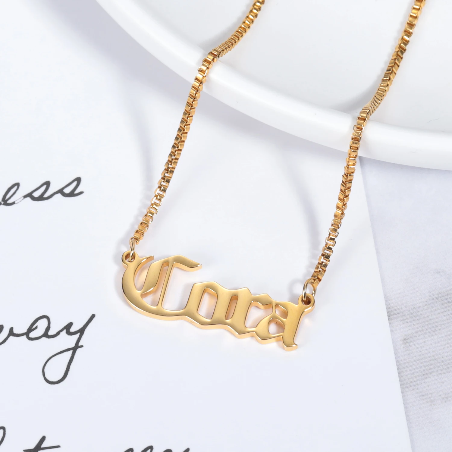 Ожерелье с именем на заказ со старым английским персонализированным именем ожерелья для женщин очаровательное название ювелирные изделия с подвеской из нержавеющей стали