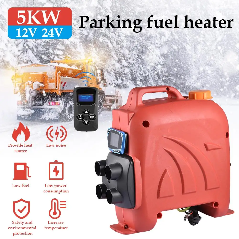 Медный нагреватель зажигания с ЖК-дисплеем, 12 В, 24 В, 5 кВт, автономный дизельный парковочный нагреватель с дистанционным управлением для грузовиков, автобусов, автодома