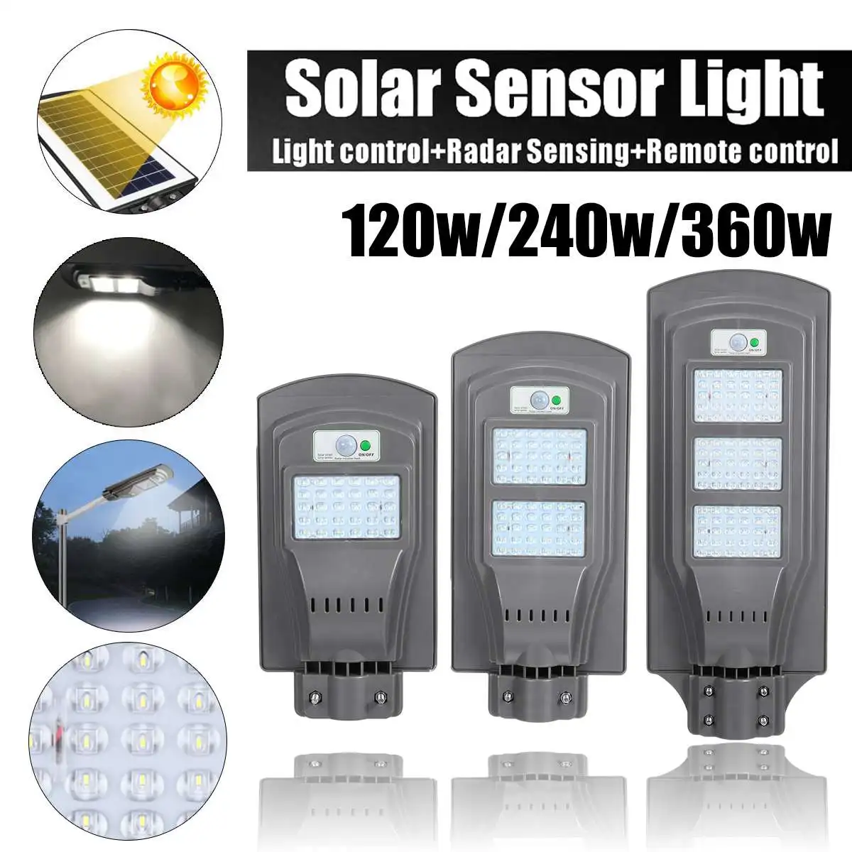 Светодиодный светильник на солнечной батарее, 120 Вт, 240 Вт, 360 Вт