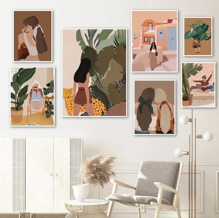 Настенные картины в скандинавском стиле с изображением девушек и же...