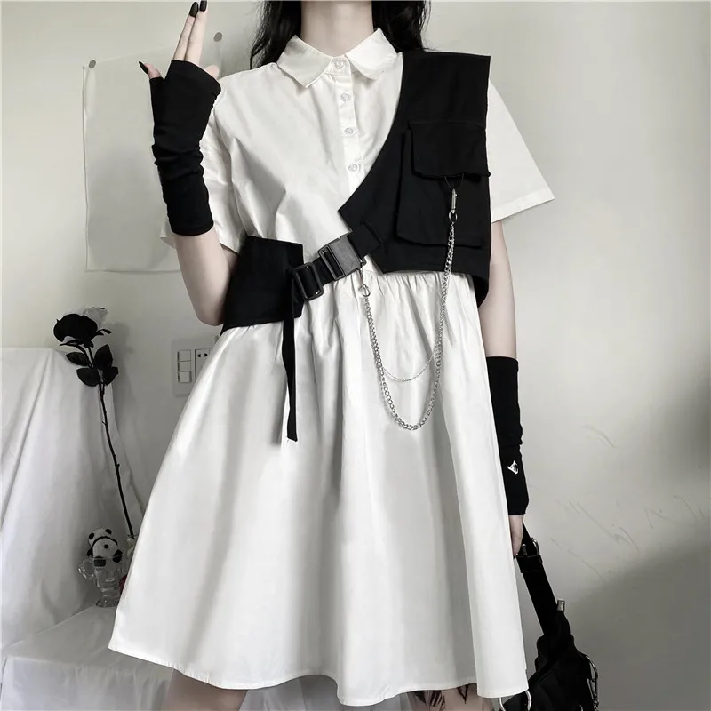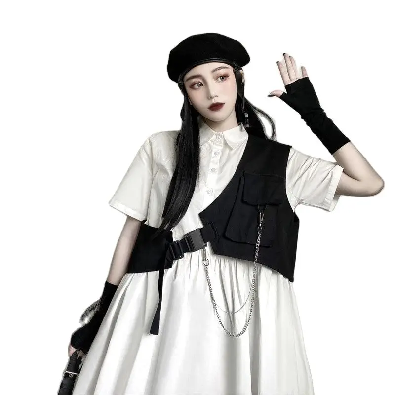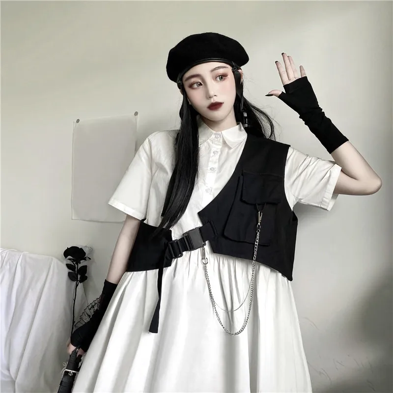 Harajuku панк-жилет для женщин на одно плечо косой брюки карго курт...
