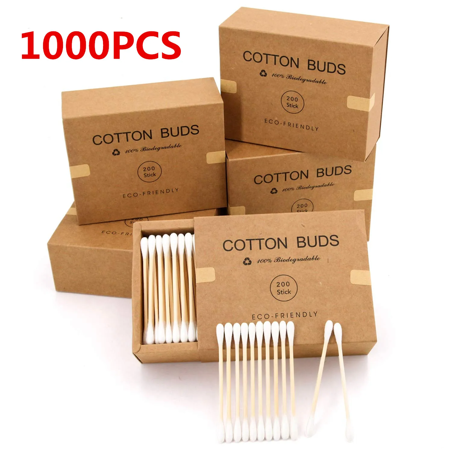 1000 бамбуковых ватных палочек, деревянные ватные палочки, органические экологически чистые ватные палочки, деревянные палочки для чистки ушей, косметические инструменты для макияжа
