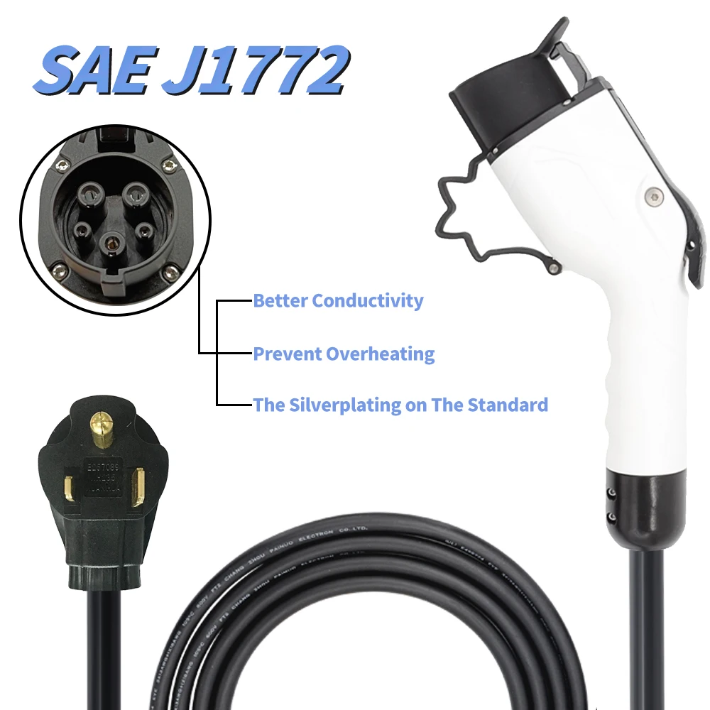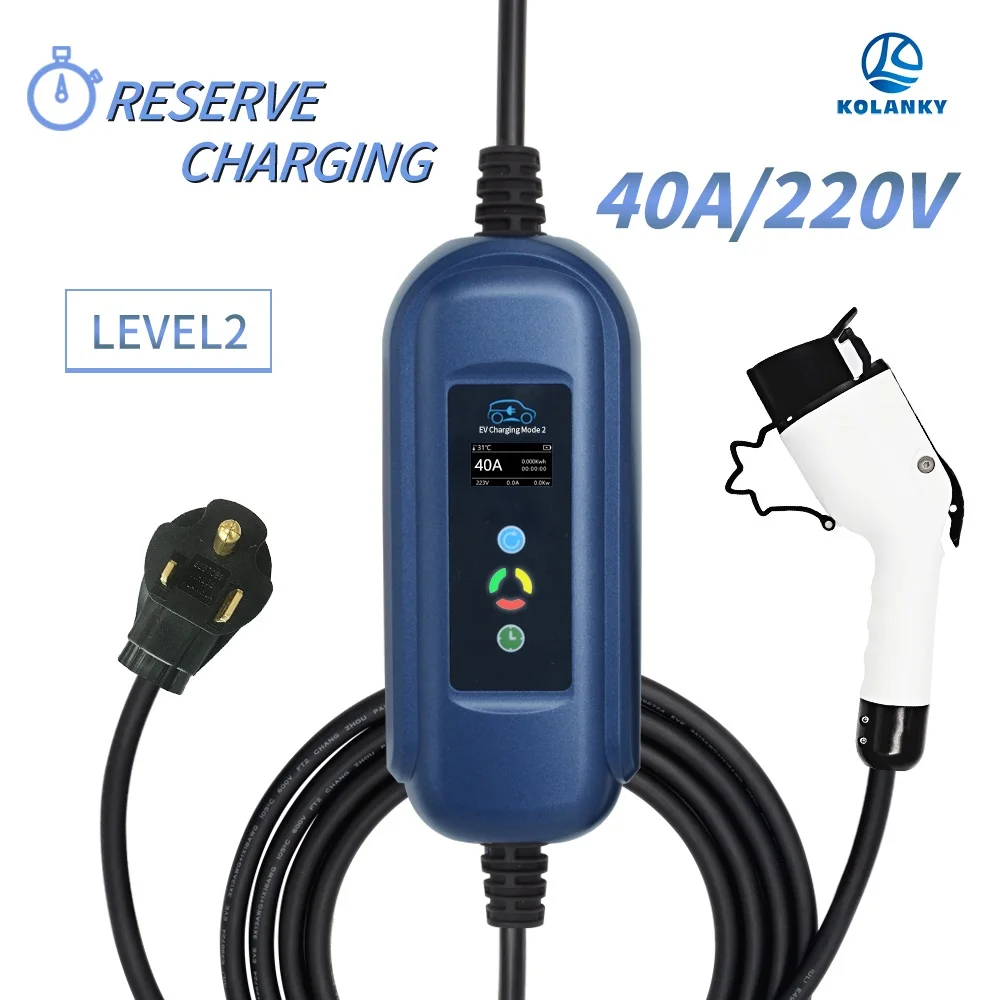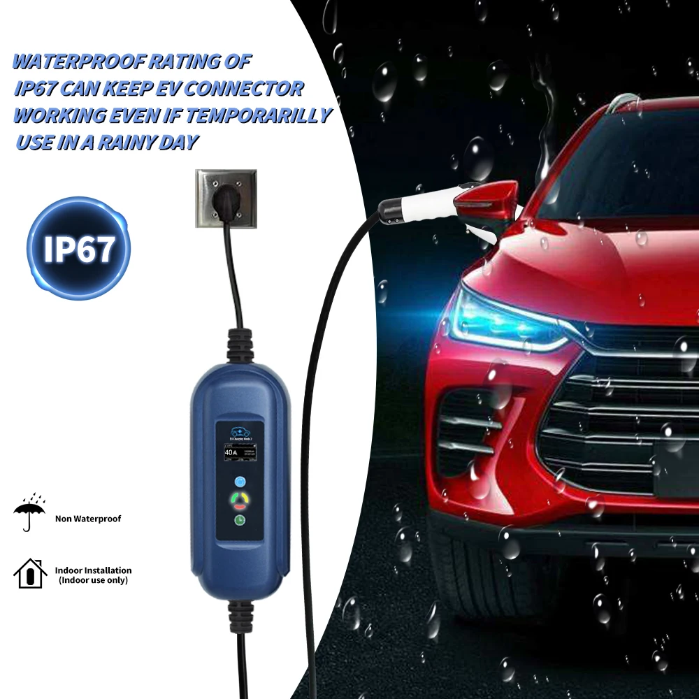Зарядное устройство для электромобилей, 40 А, 9,6 кВт, тип 1, J1772, уровень 2, EVSE, кабель 5 м, Регулируемый блок управления для электромобиля, зарядка с пробка Nema