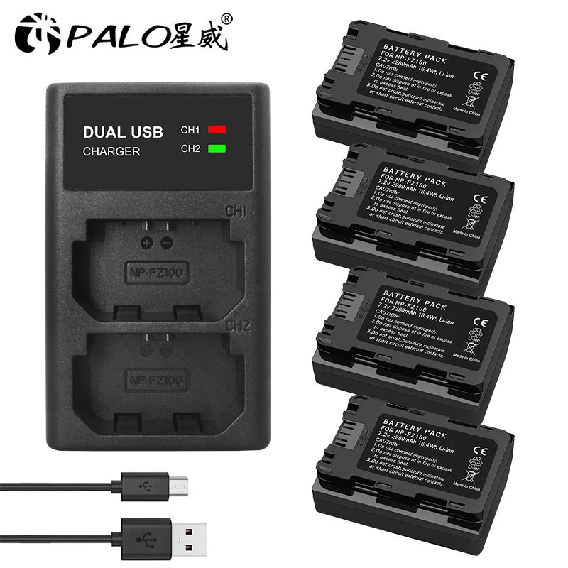 PALO 2 шт. 2280 мАч NP-FZ100 NPFZ100 NP FZ100 аккумулятор + двойное...