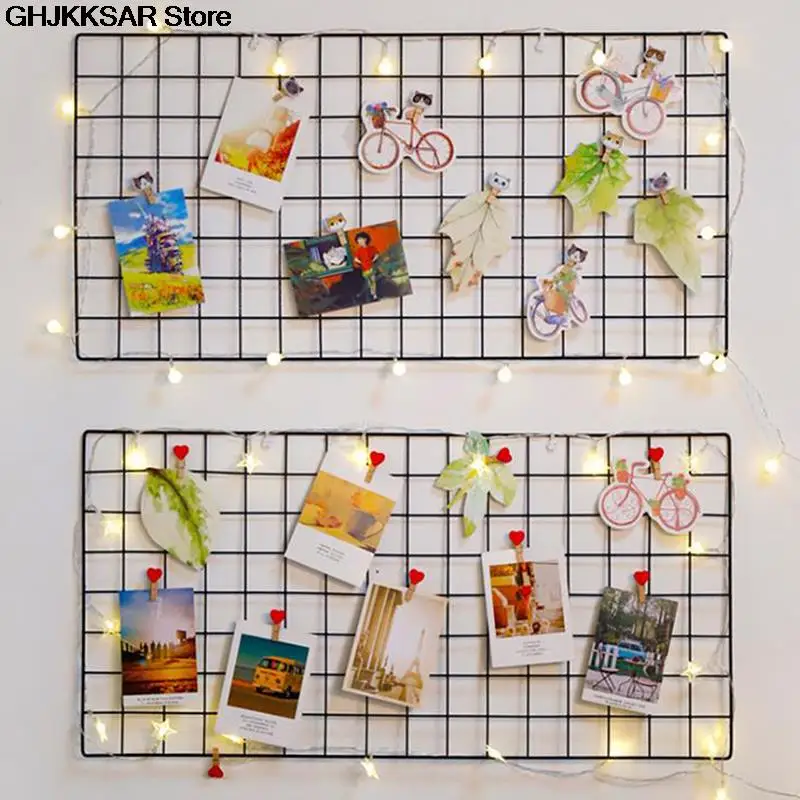 Современное Украшение стен дома, железная сетка, Скандинавское искусство, фоторамка для показа, вечеринка, металлическая полка, сетка, открытки стойки сделай сам, 40 * см x 20 см