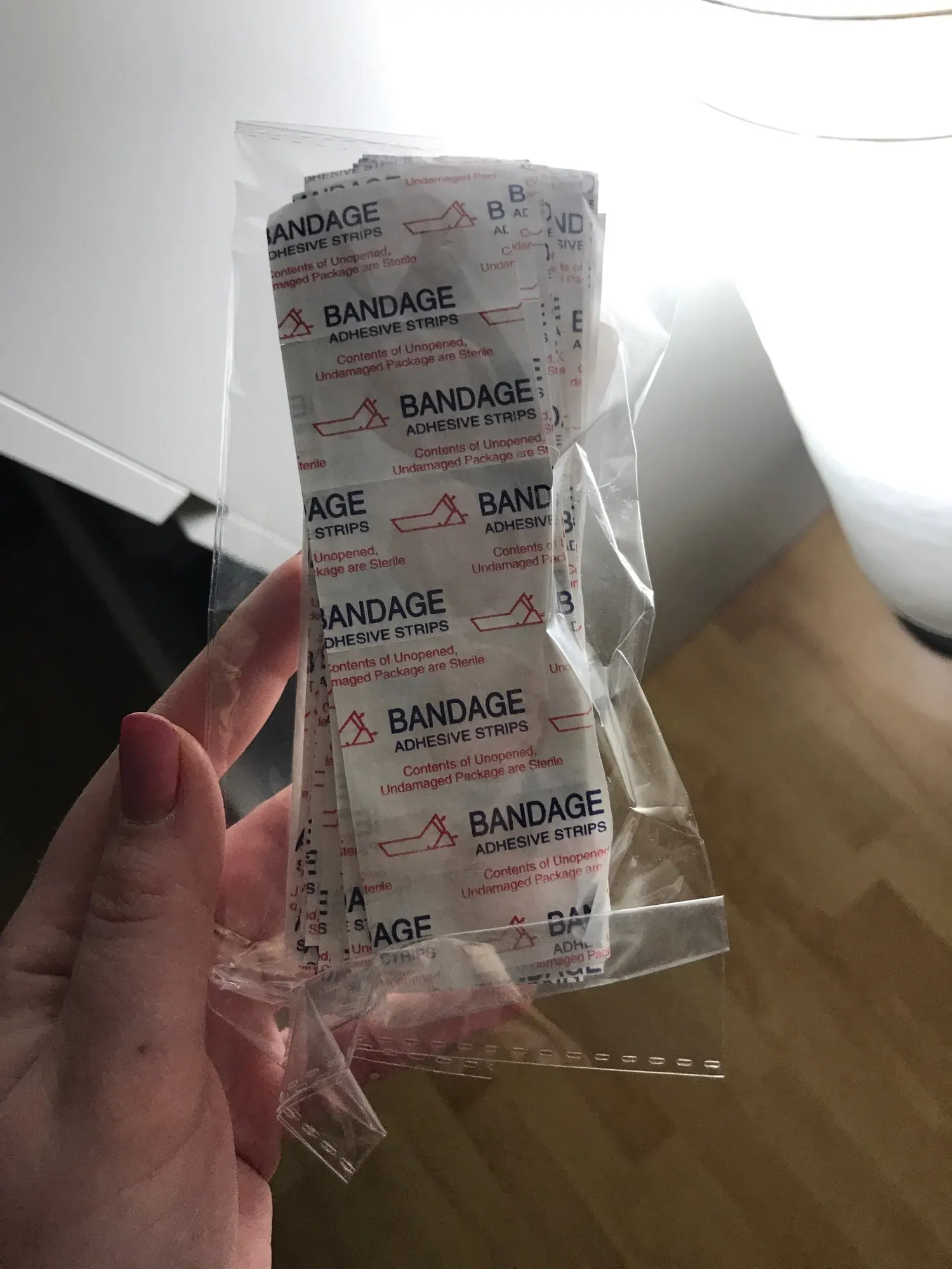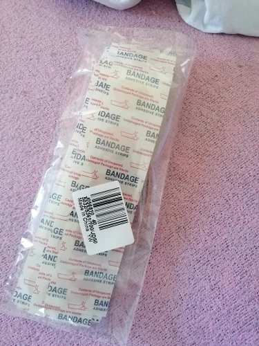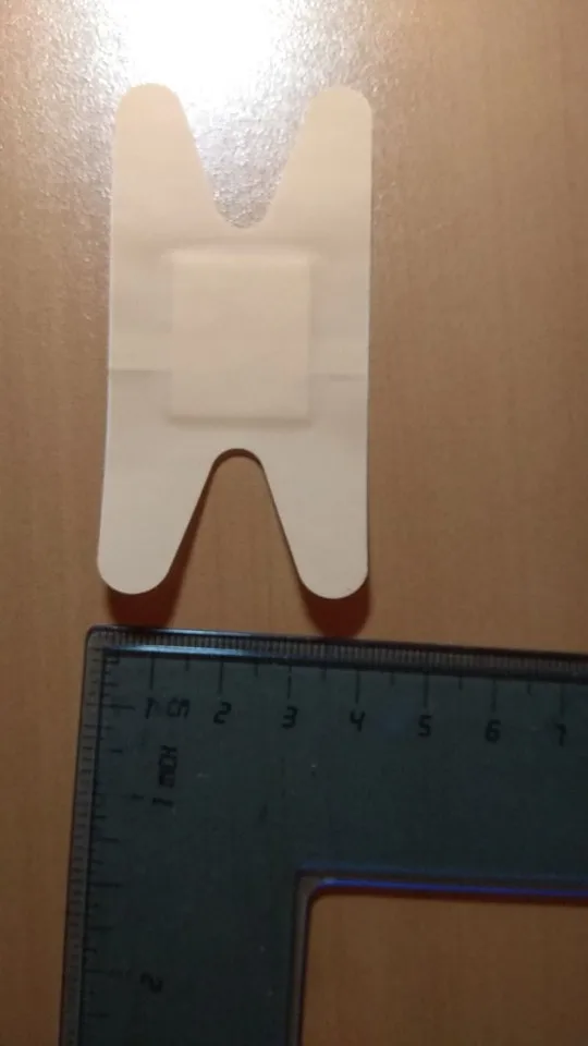 В упаковке этих пластырей всего лишь 20 штук. Продавец в удовлетворении претензии отказал, в споре на возврат части оплаты АлиЭкспресс меня поддержал.. Поверхность пластыря гладкая- матовая плёнка, на липкой стороне- подушечка из впитывающего материала, к коже прилипает нормально. Размеры для пальцев великоваты)...