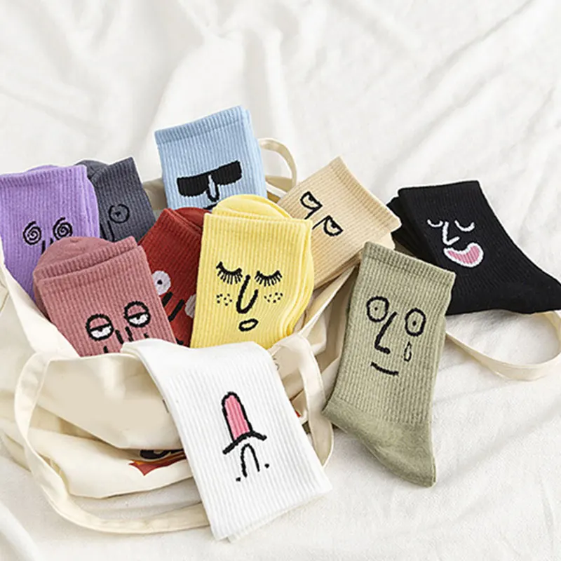 2020 в Корейском стиле Фанк смешные носки Харадзюку; Кавайные носки в полоску тенденция красочные унисекс сюрприз средней спортивные носки до середины икры