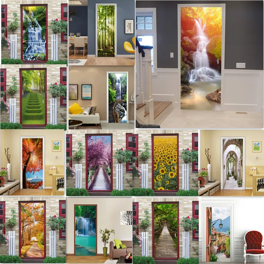 Наклейка на дверь с Приморским пейзажем2 шт./компл. ПВХ обои 3D наклейка на дверь Природный Пейзаж Плакат кухня спальня домашний дизайн Декор настенная самоклеющаяся Наклейка на стену