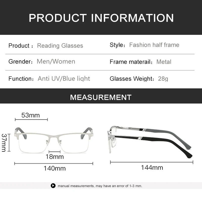 Очки для чтения мужские, ульсветильник кие, с защитой от ультрафиолета, металлическая полуоправа, защита от дальнозоркости, серебристые, 1,5, 2,5