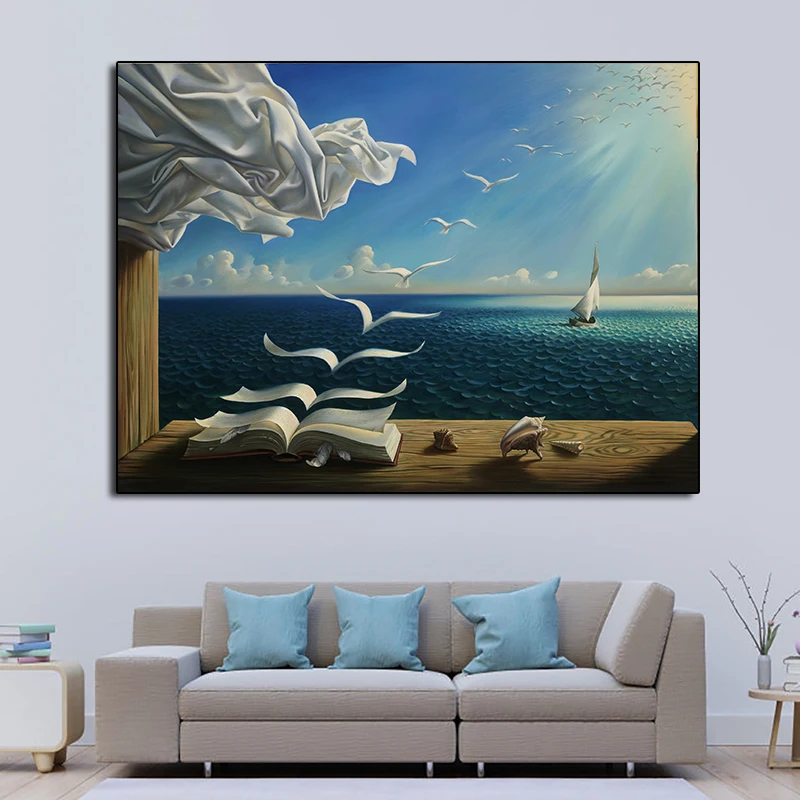 Картина на стену с волнистыми книжками, постер с суперреалистичным движением, графический Декор для гостиной