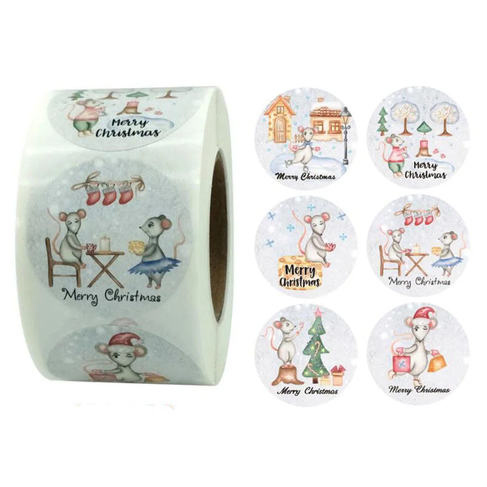 3,8 см1,5 дюймов Mouce шаблон веселого Рождества наклейки Уплотнение Этикетка наклейки литров для булочных упаковка подарочная коробка канцелярских принадлежностей украшения