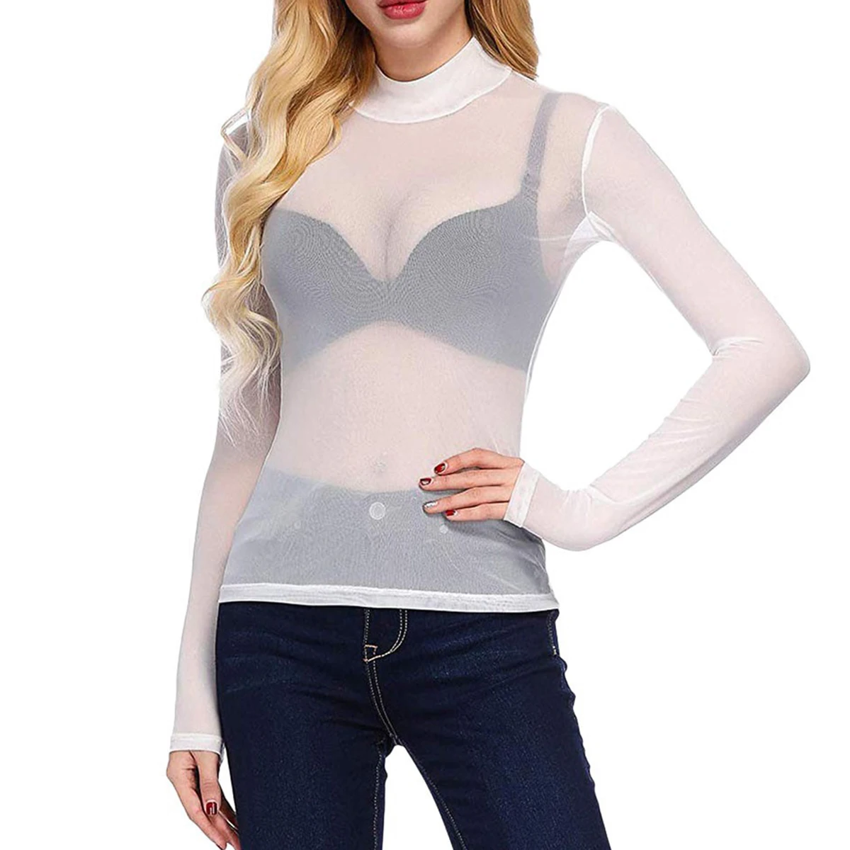 Женские сексуальные сетчатые прозрачные футболки, Новые повседневны...