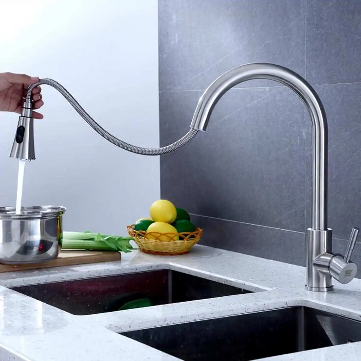 XUEQIN Выдвижной алюминиевый кухонный кран, вытяжной кран для горячей и холодной воды, вращающийся на 360 кран с одной ручкой, смеситель