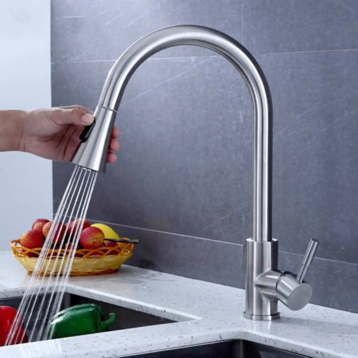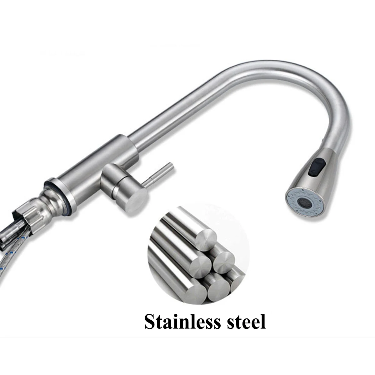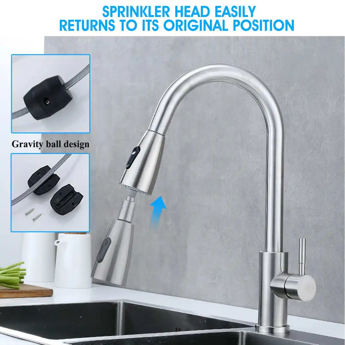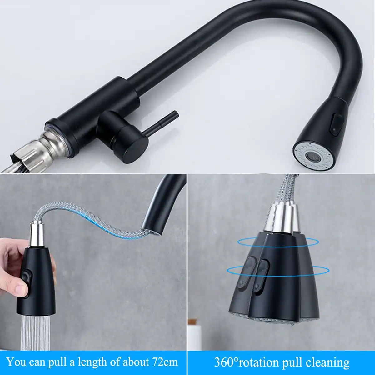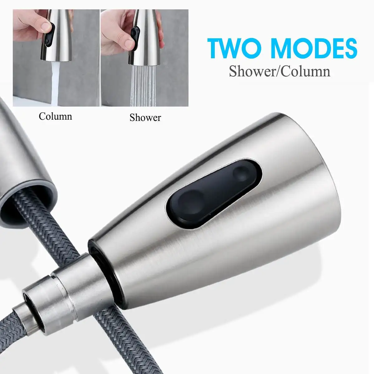 Особенности:● Конструкция гравитационного шара, установленная в части шланга, в основном помогает вытянуть насадку обратно● Снимаемая длина около 72 см● Поворот на 360 ° вытягивающая Чистка● Кран для горячей и холодной воды● Два режима выхода воды, форма душа, форма колонны.Применение: кран