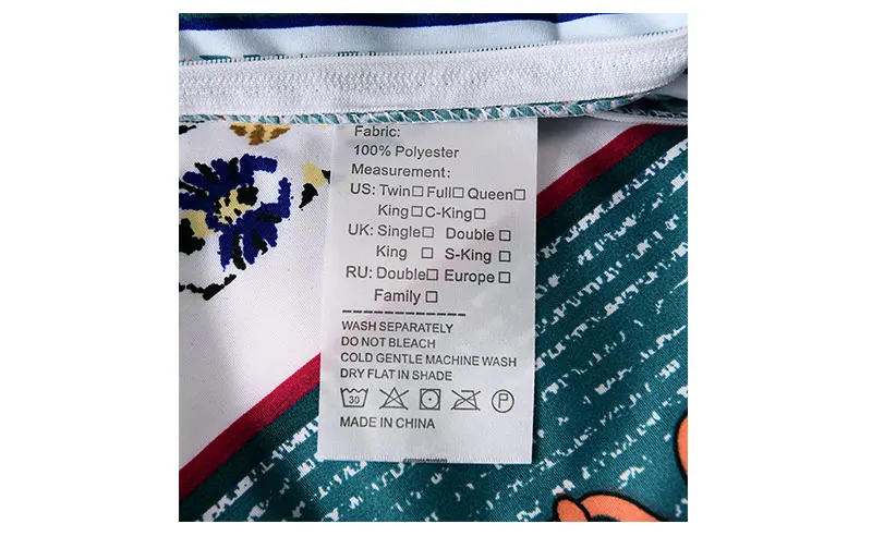US-Twin(2 шт.) = пододеяльник: 168*229 см * 1, наволочка чехол: 50*75*1;США (3 шт.) = пододеяльник: 200*230 см * 1, наволочки: 50*75*2;US-Queen(3 шт.) = пододеяльник: 228*228 см * 1, наволочки: 50*75*2;US- King(3 шт.) = пододеяльник: 260*230 см * 1, наволочки: 50*90*2;Европейский (2 шт.) = пододеяльник: 135*200 см * 1, чехол для подушки: 50*75*1;Европейский двойной (3 шт.) = пододеяльник: 200*200 см * 1, наволочки: 50*75*2;EU-AU-King(3 шт.) = пододеяльник: 240*220 см * 1, наволочки: 50*75*2;AU-Single(2 шт.) = пододеяльник: 150*200 см * 1, наволочка чехол: 50*75*1;AU-Double(3 шт.) = пододеяльник: 180*210 см * 1, наволочки: 50*75*2;AU-Queen(3 шт.) = пододеяльник: 210*210 см * 1, наволочки: 50*75*2;
