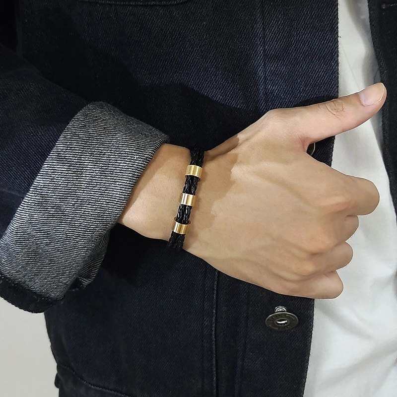 Браслет мужской кожаный, с гравировкой, из нержавеющей стали
