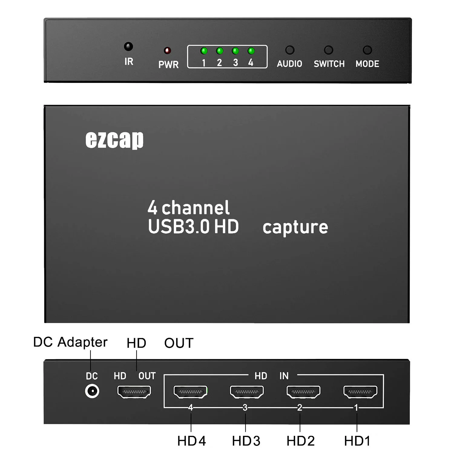 Ezcap 264 видеозахват 4x1 hd многоканальный переключатель 4-канального экрана hd 1080P 60fps USB3.0 коробка для записи игр прямой трансляции