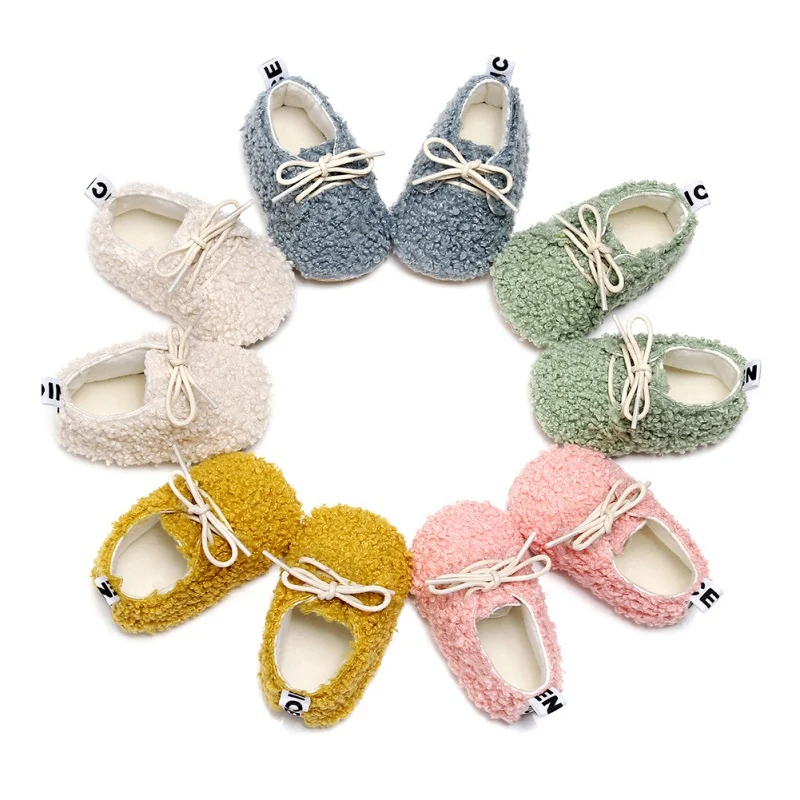 Новые зимние детские короткие ботинки для малышей, бархатная мягкая подошва, хлопковая обувь на шнуровке, обувь для малышей 0-24 месяцев