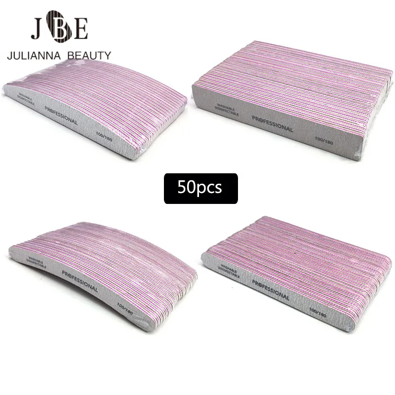 50 шт., двусторонняя пилка для ногтей, 80100180240