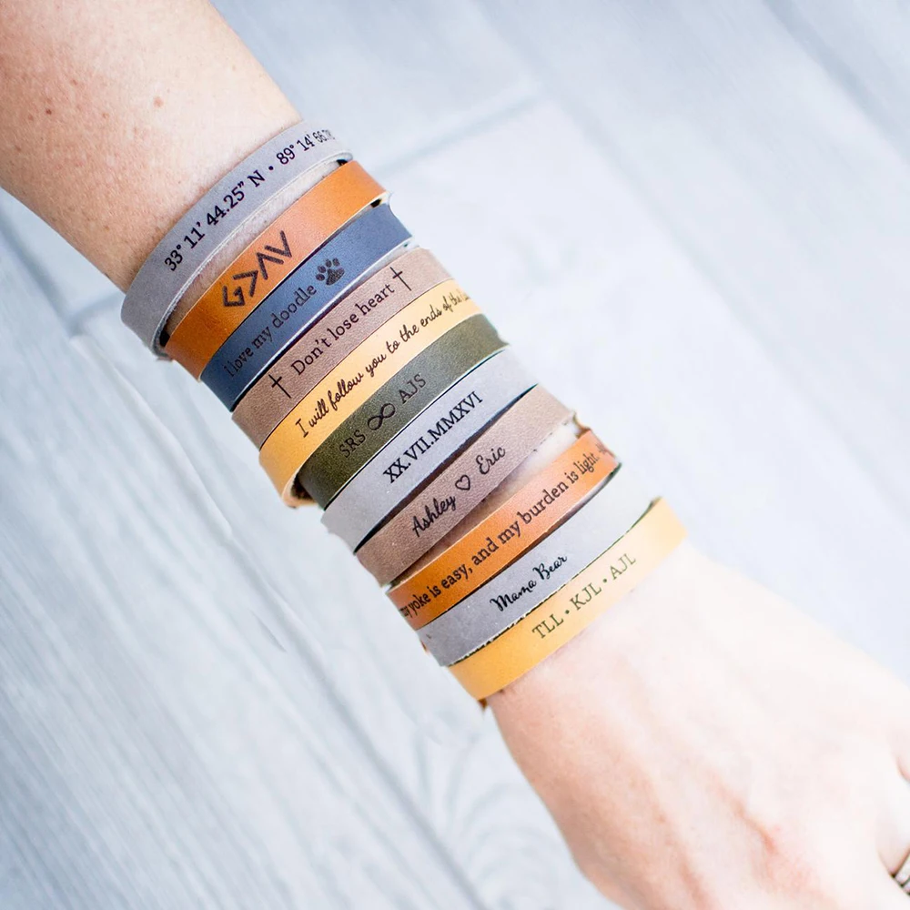 Браслеты из натуральной кожи на заказ, персонализированный браслет с выгравированным любимым именем и значимыми цитатами, подарок на Рождество, годовщину