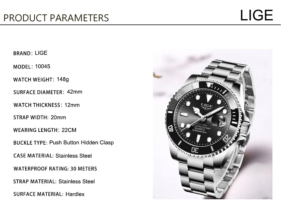 Часы наручные LIGE Мужские кварцевые, брендовые Роскошные модные во...