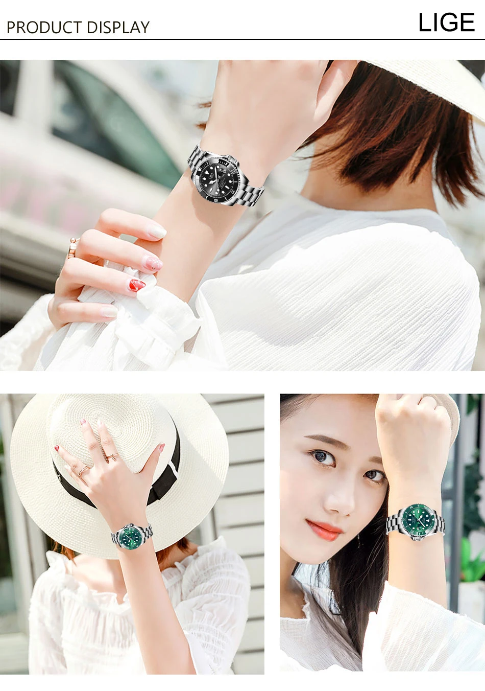 Часы наручные LIGE женские из нержавеющей стали, повседневные модны...