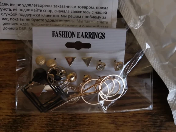 Серьги-гвоздики хорошо смотрятся. Заказывала этот набор именно из-за круглых больших висячих солнышек. Спасибо, всё целые . Аккуратно исполнено. Пришли 4посылки в одной. Добрались быстро. Спасибо продавец за такую красоту. Ещё в посылке был купон и дез салфетка.