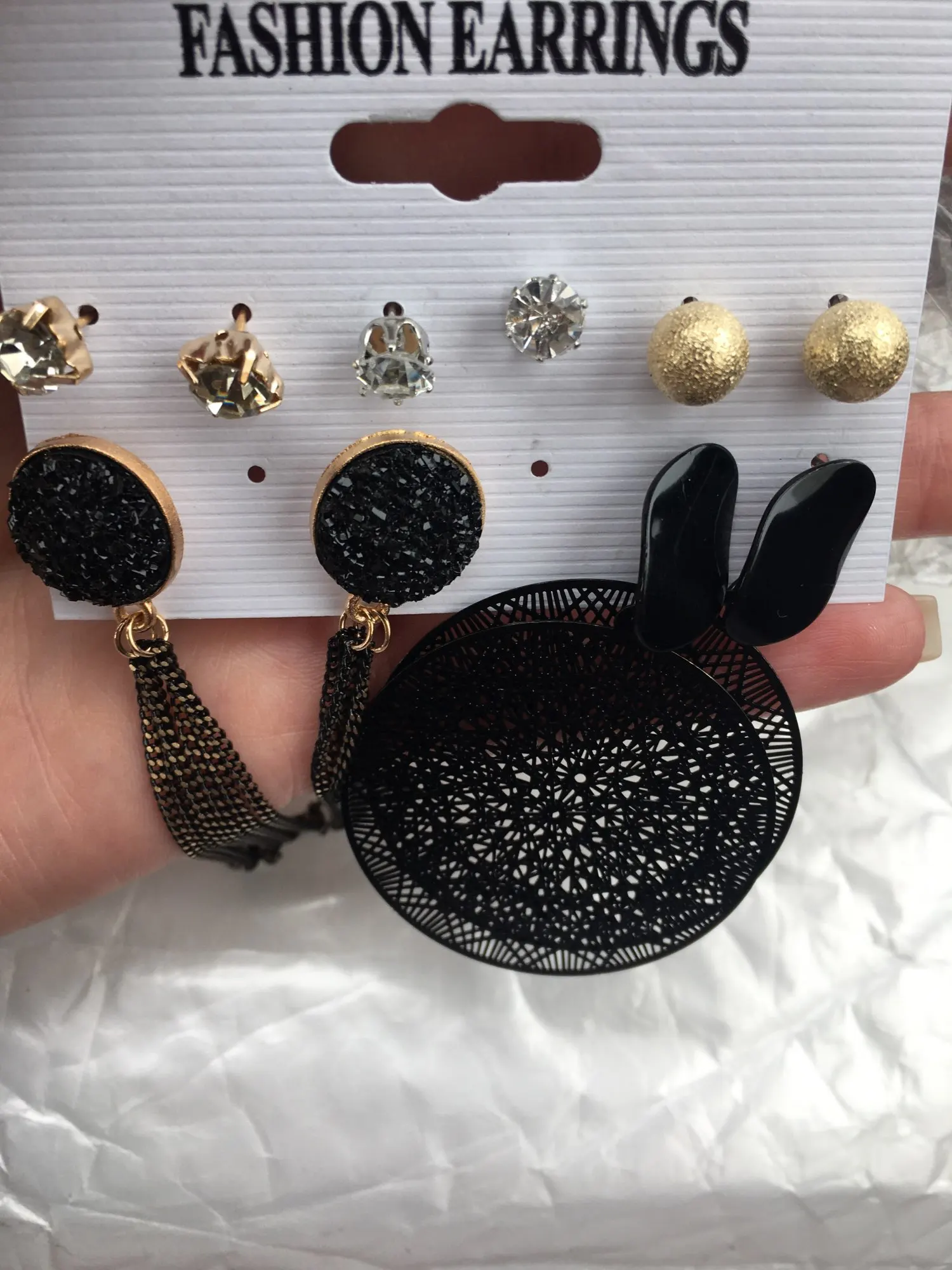 Особенно понравились чёрные сережки из набора. Брала 2, потому что цена вообще копеечная, у нас такие стоять в разы дороже. У каждой сережки есть свой силиконовый замочек. Упаковано все было хорошо ничего не сломалось, не помялось. Рекомендую!