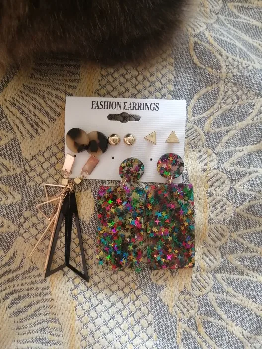 Серьги Смотрятся все нереально красиво, очень довольна что заказала, тем более за такую цену и 6 пар серёжек, нереально круто. На фотке кажутся крупнее чем в жизни, но это даже лучше, небольшие и смотрятся очень красиво. К покупке обязательно рекомендую ❤️