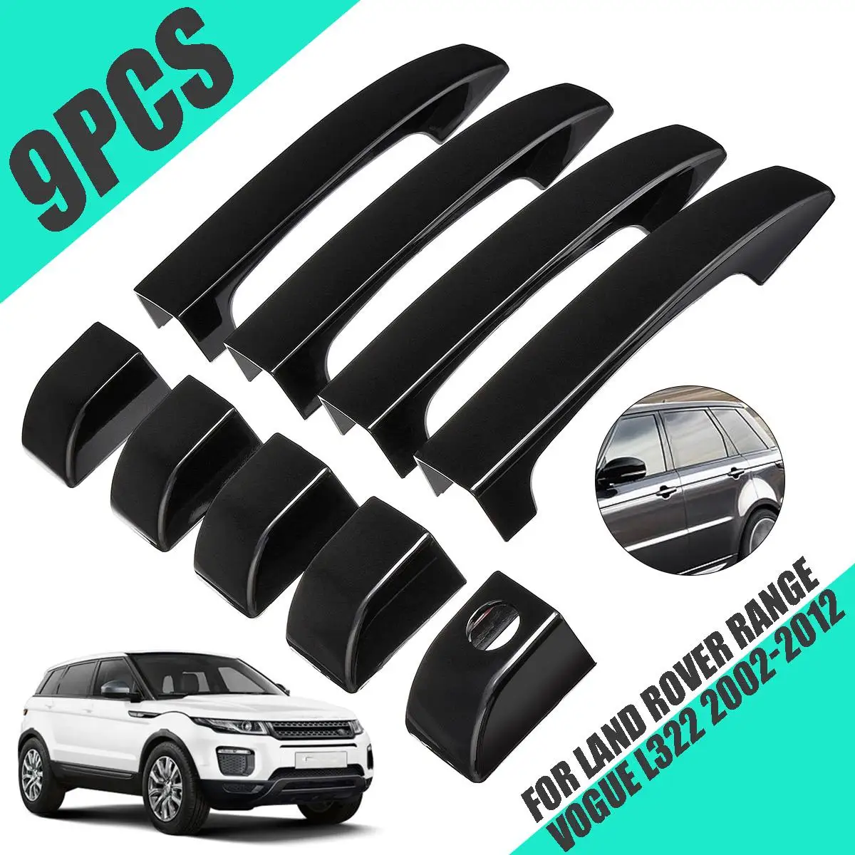 9 шт. глянцевые черные накладки на дверные ручки для Land Rover Range Rover L322 2002 2003 2004 2005 2006 2007 2008 2009 2010 2011