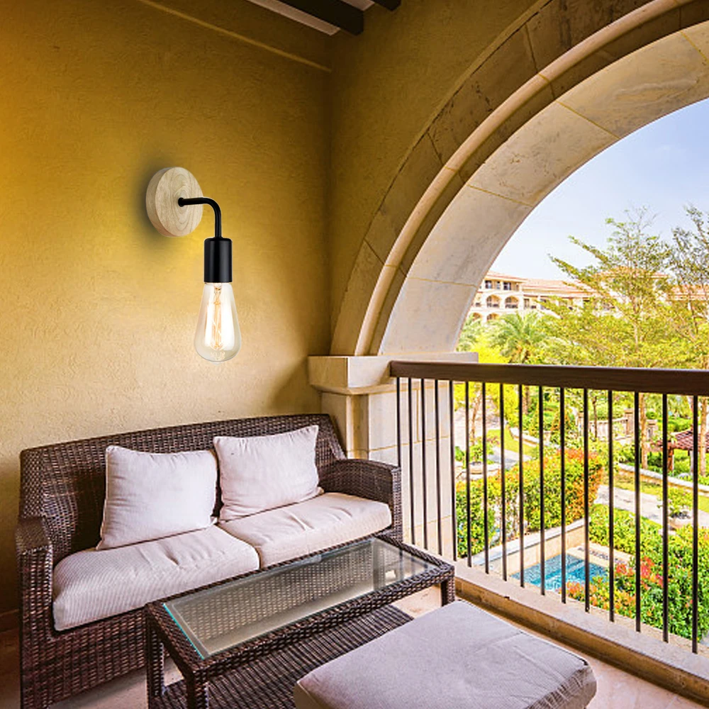 Деревянная настенная лампа E27, винтажное деревянное бра AC85-265V, прикроватная лампа для спальни, комнатное декоративное освещение, индастриал
