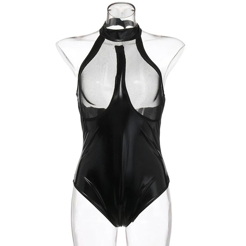 Сексуальное боди из лакированной кожи, Цельный купальник для женщин...