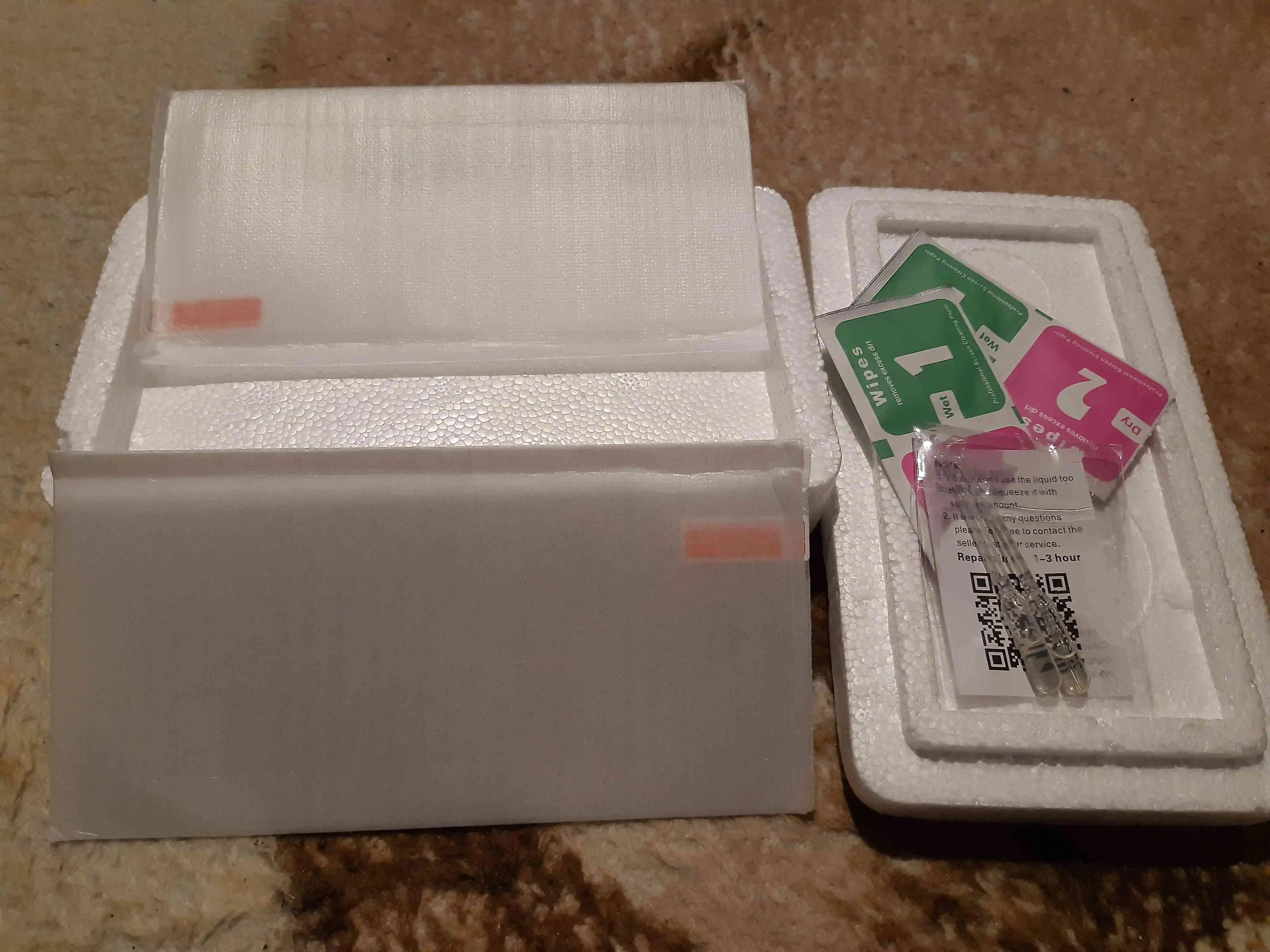 Замовив 12.11, прийшло замовлення на відділення укрпошти 01.12. В комплекті 2 скла, 4 серветки, 2 пляшечки з рідиною для протирання екрану. запаковано в цеглину пінопласту. Чи підійде до телефону - поки сказати складно, бо він ще не прийшов