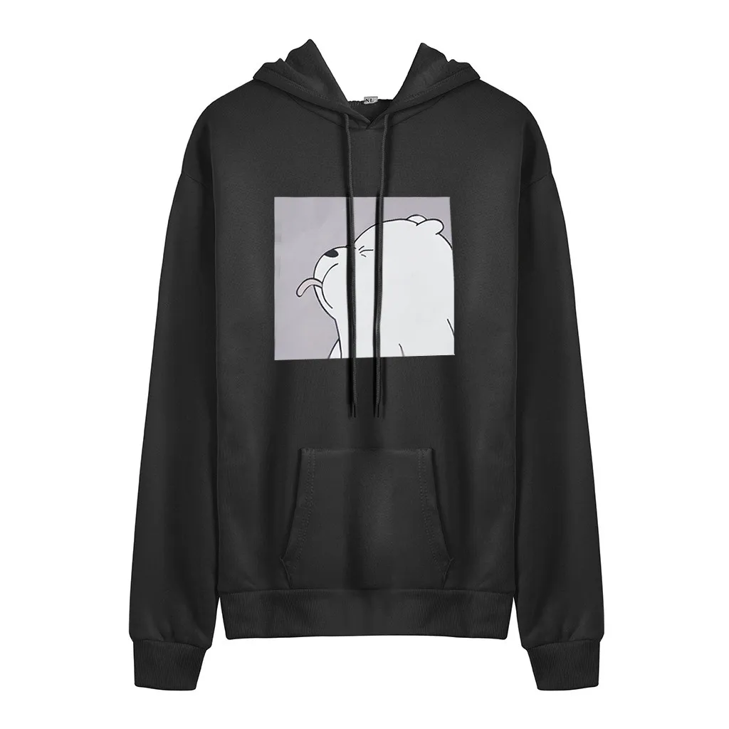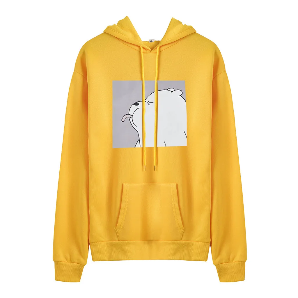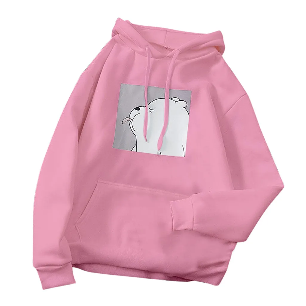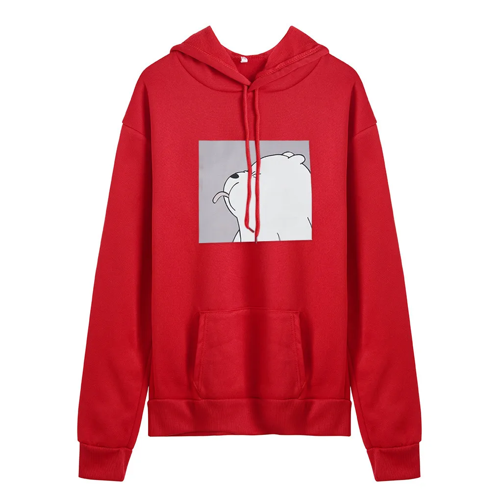 # R40 Толстовка Оверсайз с мультяшным принтом медведя, Женский Повседневный Однотонный пуловер с капюшоном и карманами и длинным рукавом, Свитшот 2020, толстовка
