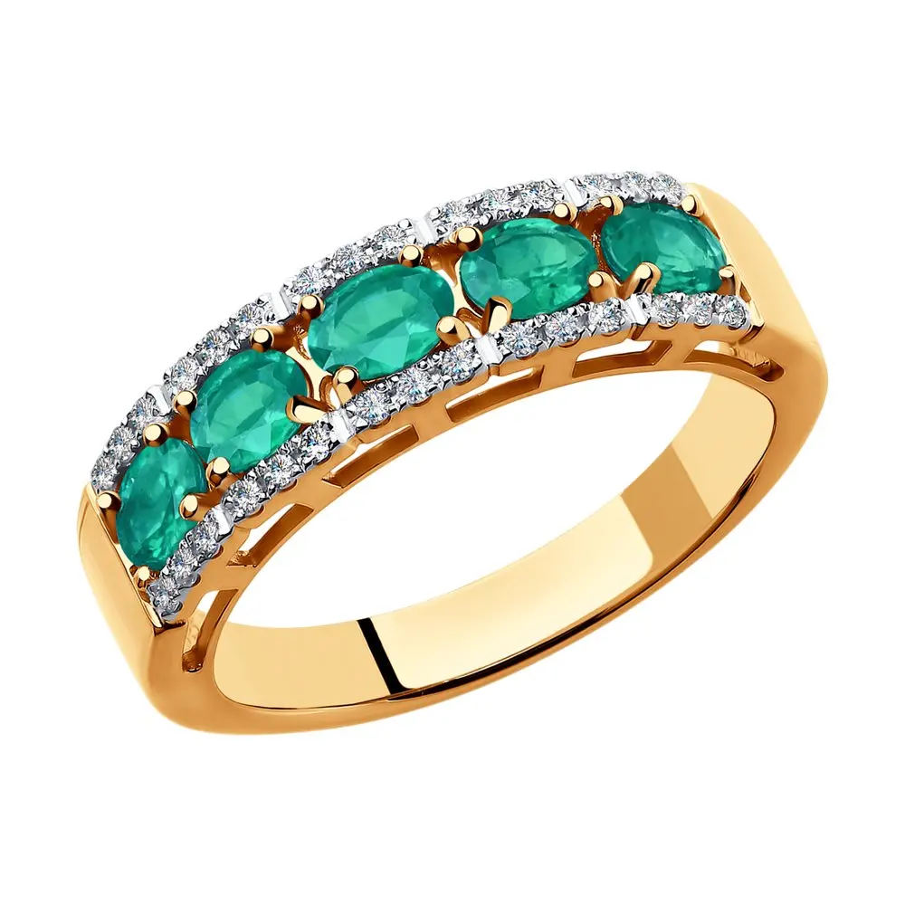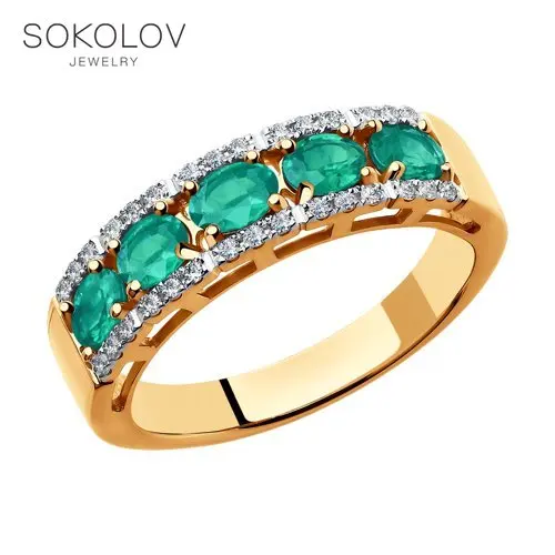 Кольцо SOKOLOV Diamonds из золота с бриллиантами и изумрудамиСтильный тандем красного золота, бриллиантов и изумрудов выглядит женственно и благородно. Лаконичный дизайн украшения делает его уместным в самых разных образах, в том числе деловых. А в комплекте с серьгами кольцо подчеркнёт и элегантный вечерний наряд.