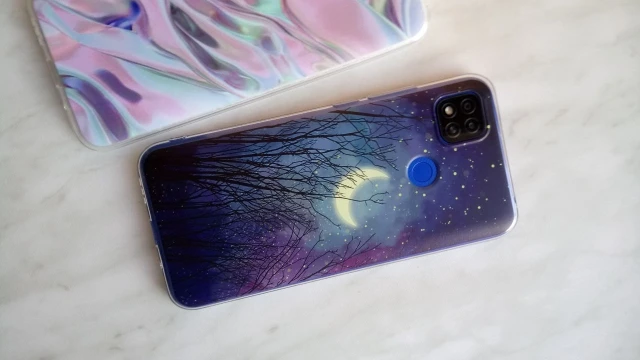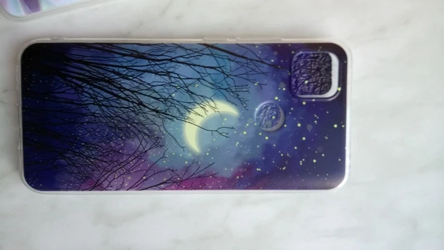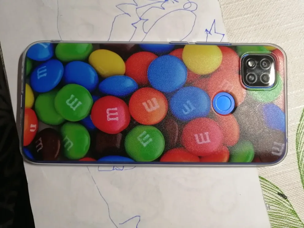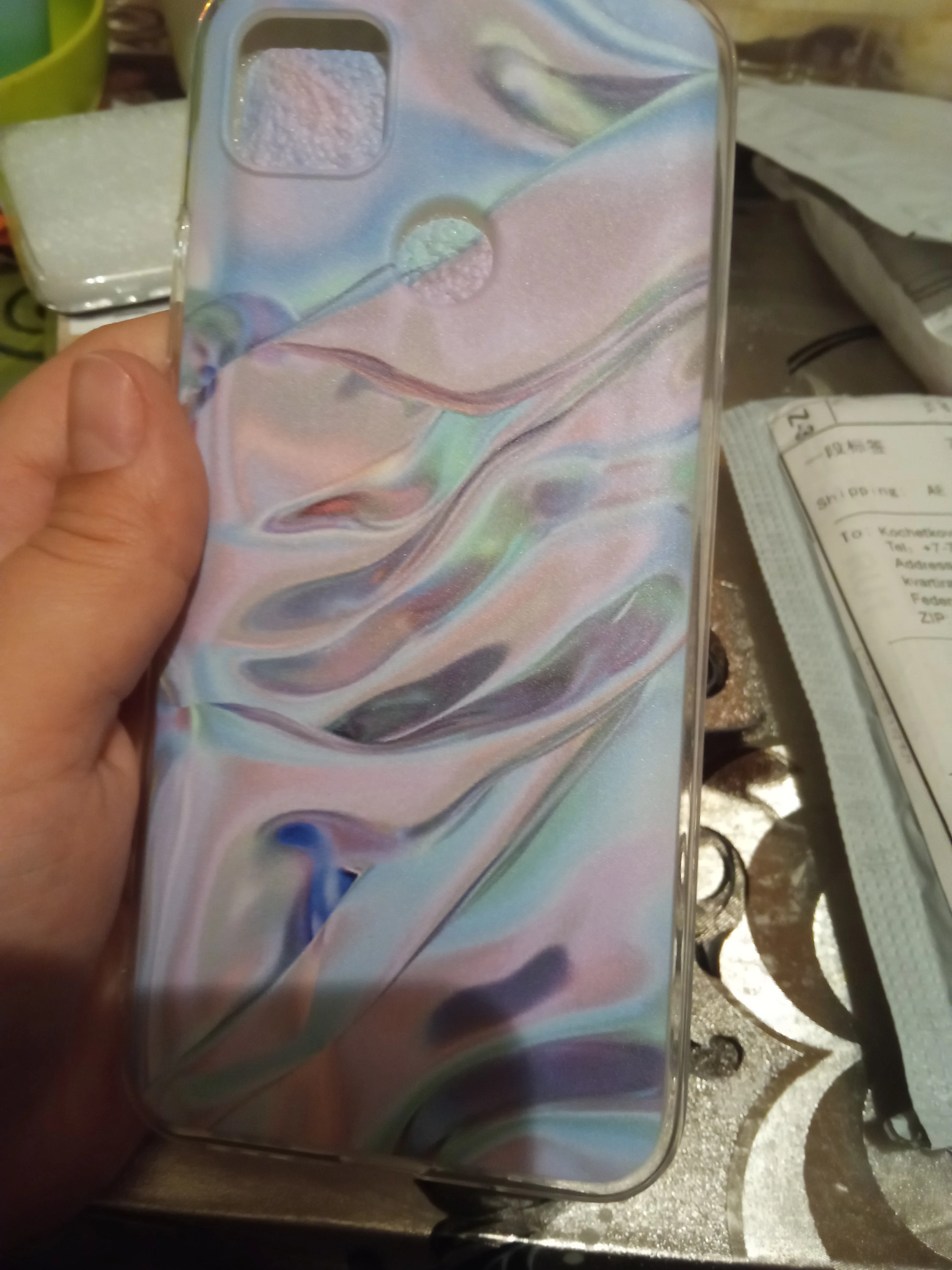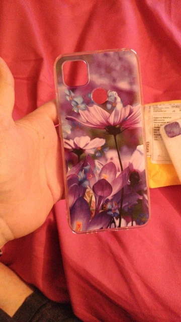 посылка шла примерно месяц, наверно потому что нг на носу, упаковано было в пакет и пупырку.Хороший плотный чехол, рисунок только сзади, по бокам прозрачно. На редми 9с nfc подошел отлично. Задняя поверхность шершавая, телефон в руке сидит хорошо.