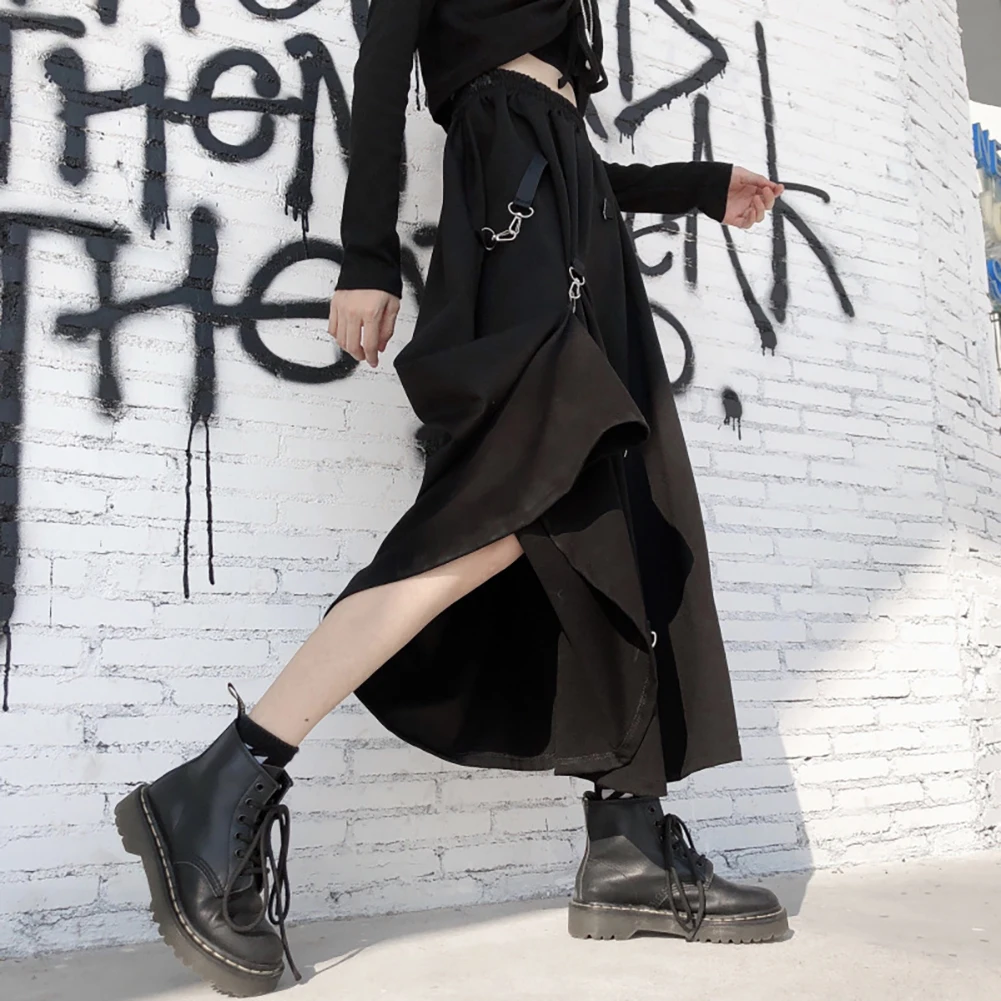 Юбка с высокой талией, подвесной пряжкой, в темном стиле и в повседневном стиле.