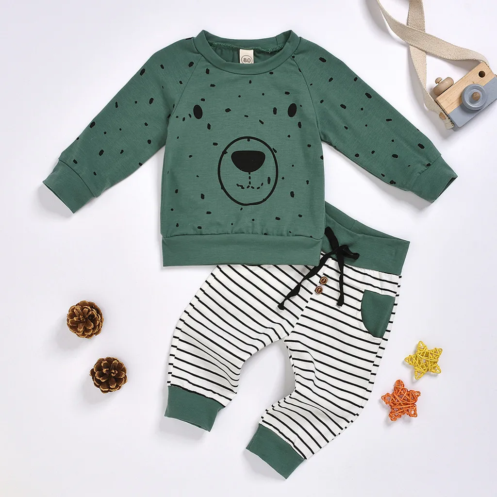 Толстовка с капюшоном для маленьких мальчиков; Толстовка с рисунком медведя; Топ + штаны; Комплект одежды