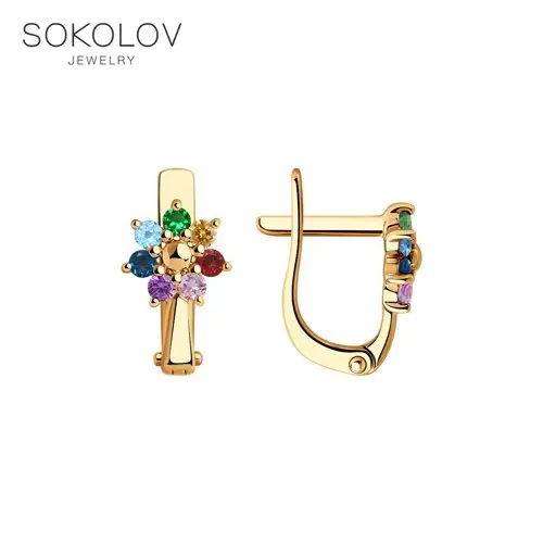 Серьги SOKOLOV из золота с миксом камней, Золото, 585, Детские, Серьги 2022 тренд, Оригинальная продукция